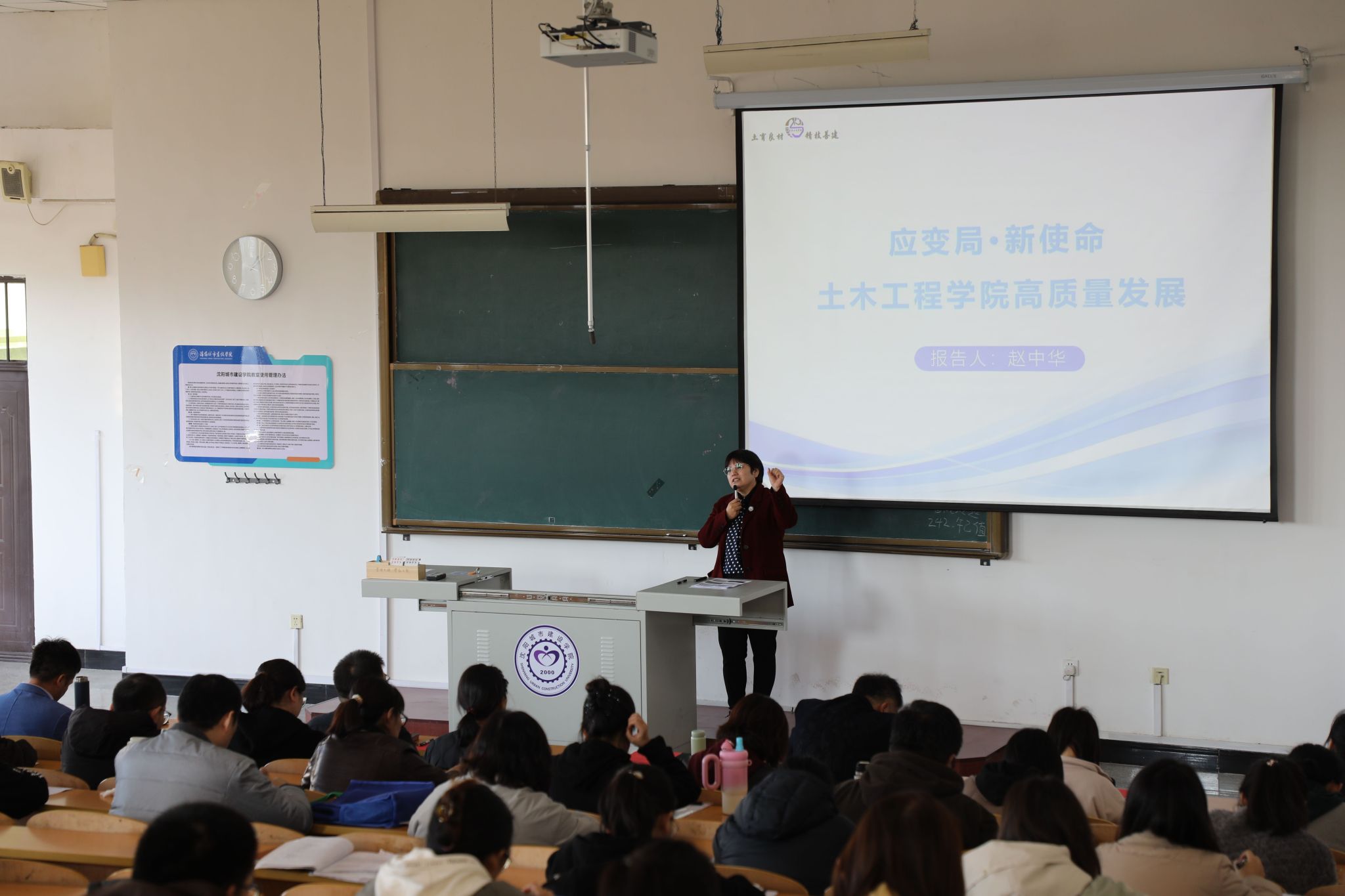 赵中华以“应变局•新使命-bv伟德国际1946高质量发展”为题,在报告中深入剖析了当前建筑行业所面临的新形势和未来发展趋势。基于行业需求发生的质变,她表示土木工程学科专业应拥抱变化,“绿色、低碳、智能、韧性”是当前土木工程学科最核心的发展方向,跨领域合作与协同创新已成为推动行业发展的重要动力。结合学院工作实际,她提出全院要凝聚共识,聚焦人才培养质量,实现学院内涵质量提升、学科专业转型升级、师资团队加快布局,全面推动学院的高质量内涵式发展。