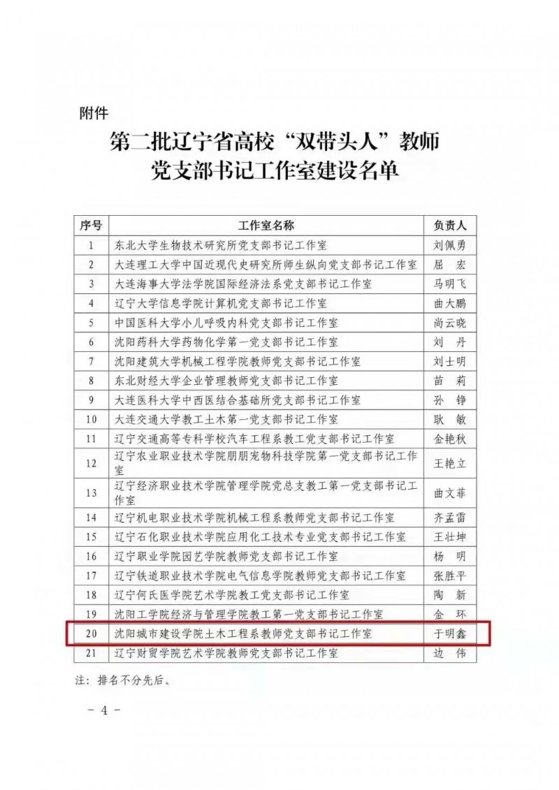 近日,辽宁省委教育工委公布了第二批辽宁省高校“双带头人”教师党支部书记工作室建设名单,土木工程系教师党支部书记工作室成功入选。