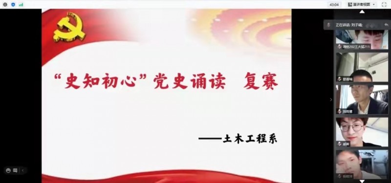 6月11日下午,土木工程系线上“史知初心”党史诵读复赛如期而至。