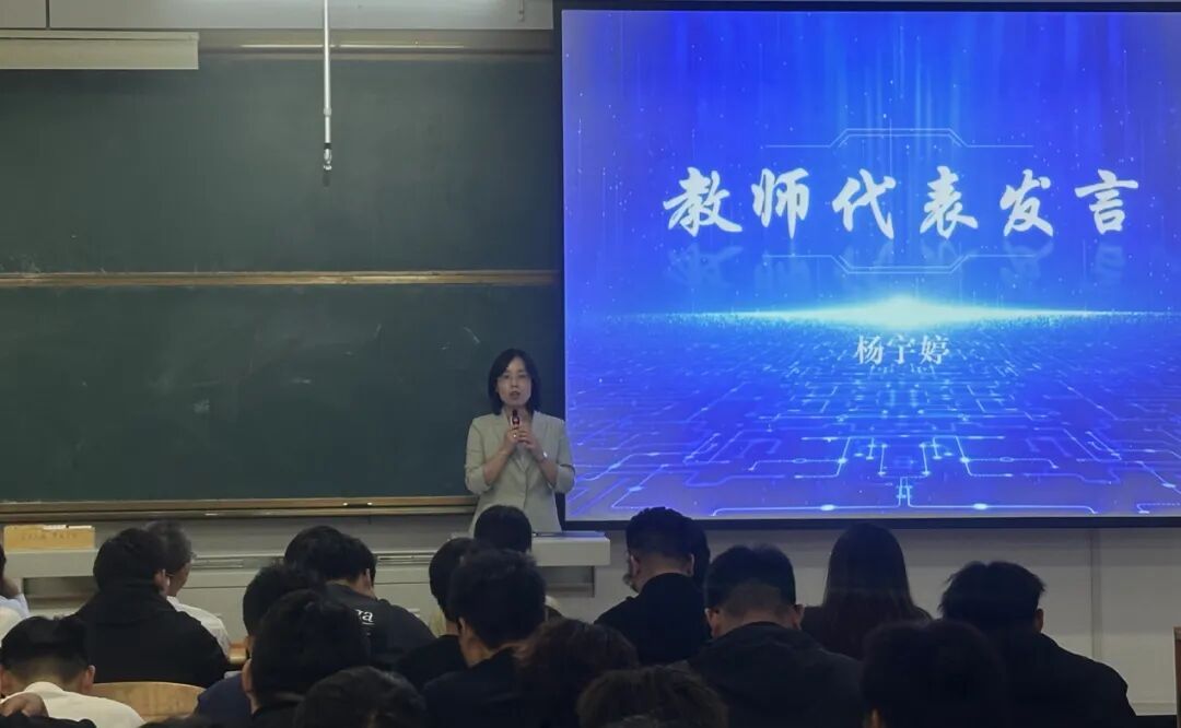 教师代表杨宇婷结合自身工程经验,强调将实践融入教学,培养学生专业技能、创新精神与社会责任感,助力交通强国建设。