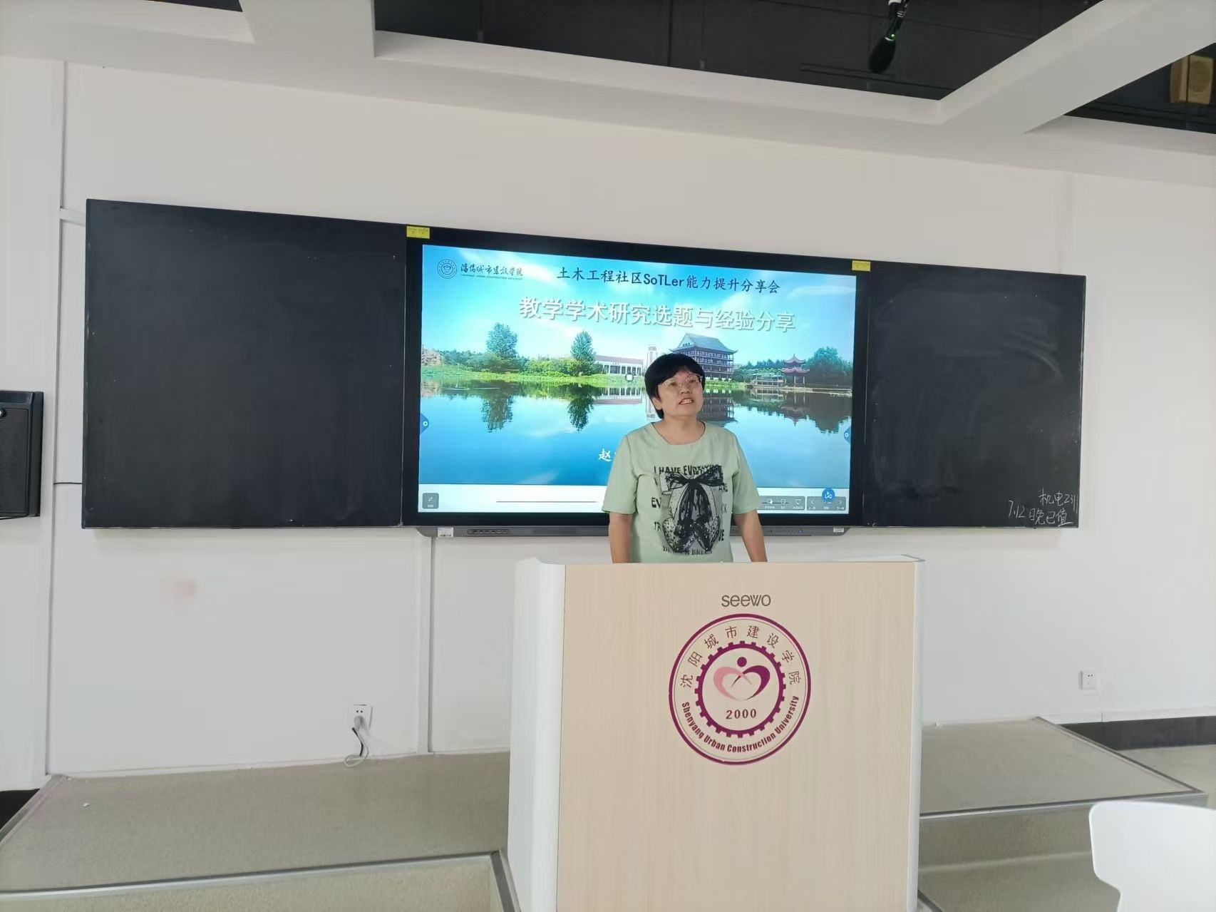 活动中,赵中华以“教学学术研究选题与经验分享”为题展开论述,她首先分享了参加上海交通大学“SoTLer教学学术能力提升”的收获,随后她从一线教师从事教学研究常见问题、研究选题、题目规范以及如何从刚入门状态到大量成果产出进行分享,她提出专任教师应以课堂教学为根本,寻找教学研究的突破点,并以问题为导向,选取有效教学方法提高教学质量;按照布鲁姆目标分类理论,进一步明确教学目标,保证教学研究的有效性和规范性;同时鼓励参会教师持续研究、不断积累,加强团队合作,发表高水平、高质量成果。