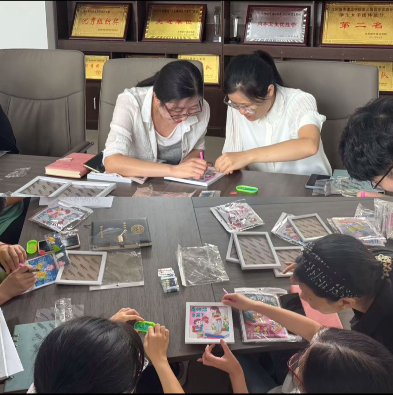 座谈会结束后,教师们开展钻石手工DIY贴画活动。现场准备了多种图案的画布与色彩斑斓的水钻,教师们从勾勒轮廓到粘贴水钻,大家分工协作、默契配合。当一幅幅闪耀着光泽的作品完成时,教师们手持作品合影留念,活动在欢声笑语中圆满结束。
