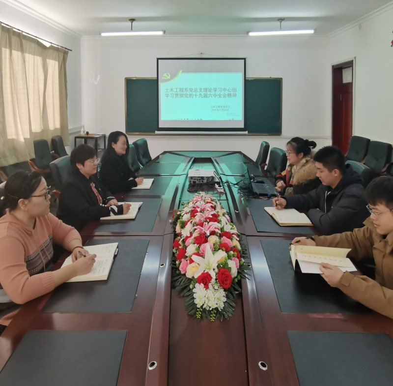 11月25日,土木工程系党总支理论学习中心组在出新楼305会议室召开集体学习会,传达学习党的十九届六中全会和中央人大工作会议精神。会议由土木系党总支书记、副主任王涵主持,中心组全体成员参会。
