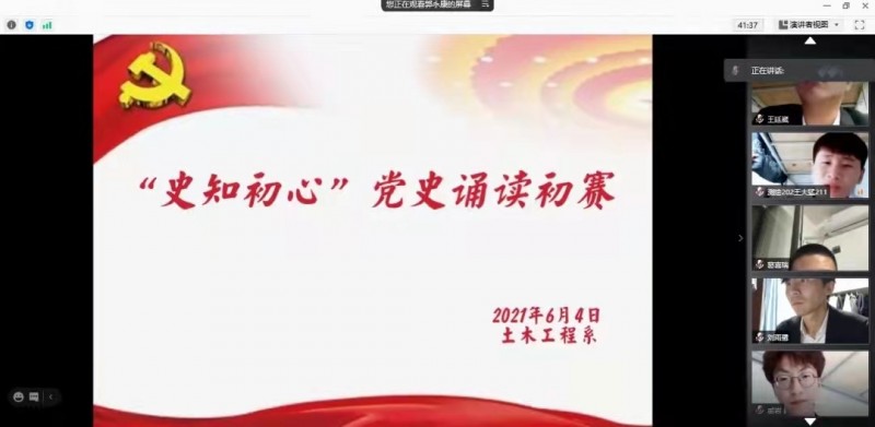 6月4日,土木工程系“史知初心”党史诵读比赛如约而至。参赛人员用激昂高亢的声音、浓浓的爱党爱国之情,通过声声诵读传递党的“好声音”。
