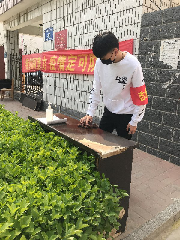 为了避免人员聚集,本次党日活动以个人为单位,全体党员利用课余闲暇时间,到自家所在社区进行清扫消毒工作。党员们人人佩戴口罩,在确保自身防护工作得当的情况下,拿着扫帚、抹布、夹子等工具对社区内的桌椅门窗进行擦拭,对地面及花坛的杂物进行清理。清理完成后,大家又对一些卫生死角进行认真细致的检查与清扫,并对门把手等居民碰触较多的地方进行消毒杀菌,确保卫生清扫有效性。在打扫的同时,党员同志还不断向社区住户宣传卫生防疫知识,呼吁大家做好防疫工作。活动中,全体党员同志积极主动,热情踊跃,不怕脏不怕累不怕苦,很好的完成了本次主题党日清扫任务。