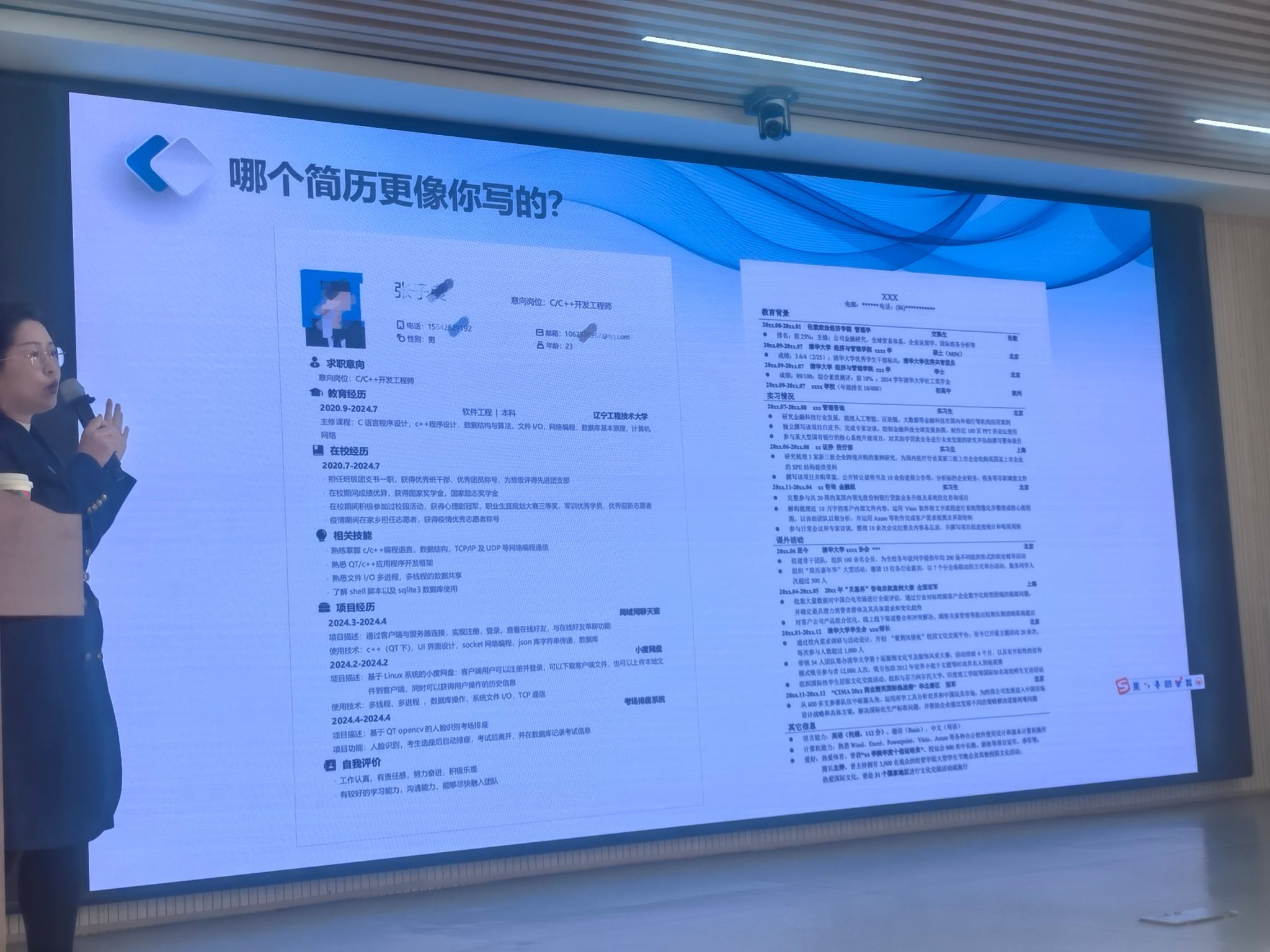 在讲座的求职技巧环节,马文婷分享了简历编写和面试准备的关键要点,提供了实用的简历模板和面试技巧,帮助学生在求职过程中脱颖而出。