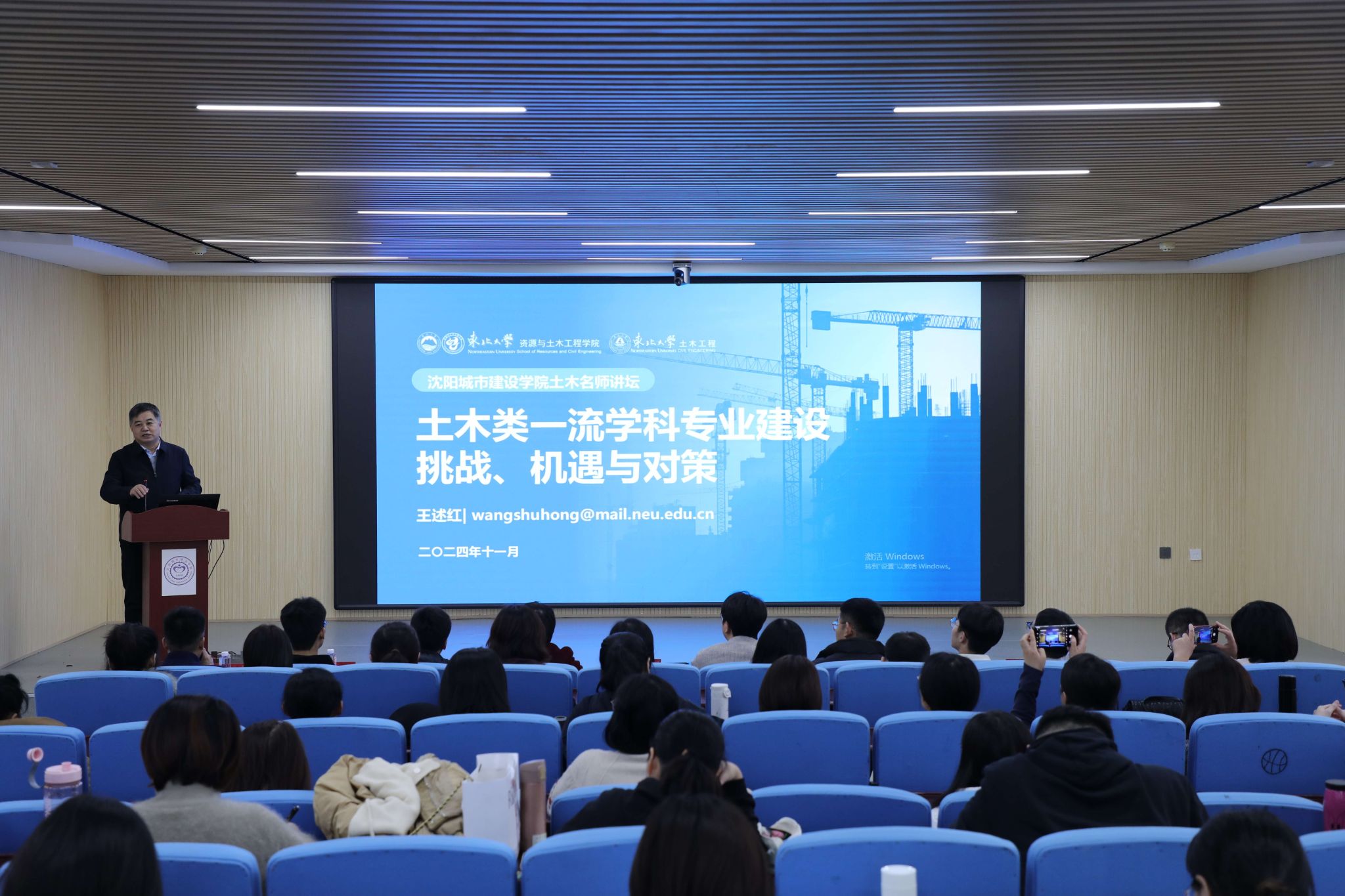 讲座中,王述红教授基于当前土木行业形势转变,从增量到存量、国内到国际、地产到基建、新建到更新,产业业态呈现新增长点,需要实现高质量发展。面对新挑战,应对新形势,也有新机遇,人才培养迎接变化,他指出了创新能力、国际视野、跨学科重要性,提出土木工程学科建设模式转变的必要性,强调要坚持守正创新、科教融汇,培养学生的核心胜任力,服务大局,深入推进土木工程专业的内涵建设。同时,他详细阐述了土木学科专业建设的具体对策,并对学院发展提出建议。
